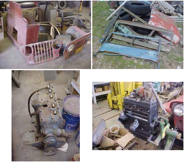 “for sale is a bunch of jeep parts. I have flat head motors, CJ-2A frame, rear eads, rear PTO, body parts for CJ-2A, 3A, plus a few for a CJ-5, gauges, trannies, transfere cases, seat frames, roll bars, air cleaners, tail gates, small parts, all kinds of stuff,,, would love to sell it as a package. The pictures do not include all the parts.. I am also selling a CJ-3A, no title “project jeep”. Also for sale is a 1955 CJ-3B high hood project, half way through the restoration, have well over $5000 invested, will sell for $4000. In the near future, I will be selling a couple of fully restored CJ-5’s. Thanks”