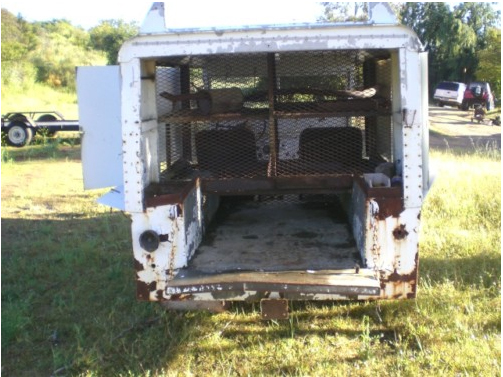 The top has functioning aluminum side storage doors and rear body aluminum storage doors that open and lock (as pictured). The top interior has metal caged storage areas, all are sturdy and have been in place about 60 years, holding up to the test of time!