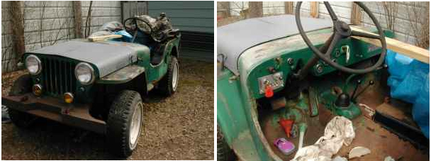 “This is first year civilian jeep, Totally complete but needs total restoration,, , no title but woudl be great for farm or ranch as this is what it was made for, also has only surface rust,, hood and windshield is in primer,,, has new 6 volt battery,,shift knobs,,, jeep VERY solid,,, even tail gate works perfect,, ti has the 4 cyl go devil 134 engine,, L head,,and i think T-90 transmission”