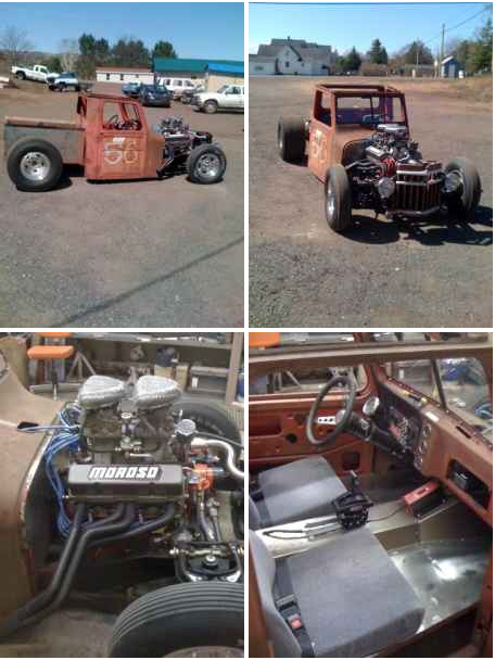 “For sale is a newly constructed rat rod willys truck. It has a total of 250 miles on it since completion. All parts were purchased new, the ones that weren’t were completely rebuilt. There is a total of $18,200.00 in parts alone in this car! It is a bargain at the asking price. The truck is as follows. Cab was sectioned 10″ down middle, channeled 10″ over frame, and 2″ taken of the bottom all the way around to remove external rocker panel. Floor structure is 1.5″&3/4″ box tube sheeted in 12ga. Gm column, full gauges, tach, shift light, cheetah scs shifter, bucket seats with seatbelts. It is wired front to back with a new harness. All lights and signals work perfectly. Truck has clean mi title, and is licensed in mi.