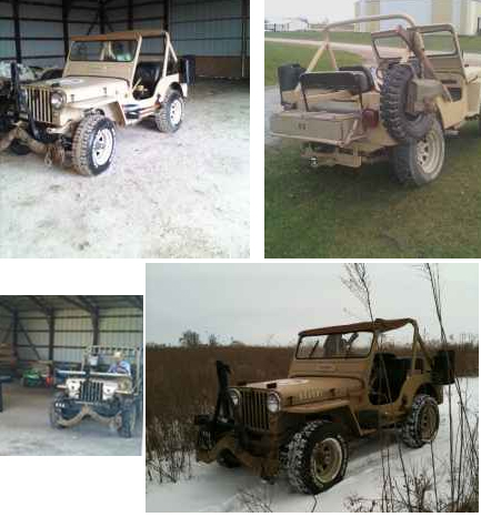 “I have a 1951 Jeep Willys CJ3A for sale. This girl is fun to drive and with summer here, will be a fun in the sun antique to drive. This jeep looks like it could have crawled up the beaches of Normandy and is a 4×4 that won’t get stuck in the mud. This Jeep is not mint or show quality, but it is in overall good body condition. The upgraded engine is a chevy V6 and it runs very well. It has updated wiring and is street legal. Has the side mounted axe and shovel, gas can, and spare tire. It has a front tow bar so that you can pull it with a 2inch ball to the lake or to your hunting spot. This jeep gets a lot of attention wherever it goes. I”m asking $4,500. I’ve brought the Jeep into the city from storage so if interested give me a call at 913-424-2188 to take a look.