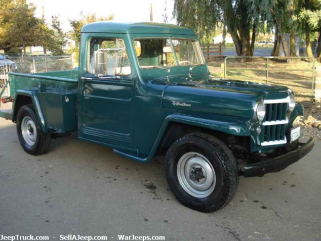 “1953 Willys Overland 4 wheel drive, 4 cylinder engine, 3 speed manual transmission with 2 speed overdrive, mostly stock original, converted to 12 volt electrical system. A recent professional mechanical restoration was completed. A fresh coat of original color Woodstock green paint was applied. It had been stored for 19 years prior to the reconditioning. Receipts will support the work that’s been done. New Dueler A/T tires. Very solid and is generally original factory stock with a couple of exceptions. It has a clear title. $13,900.00 email: rickponti@sbcglobal.net phone: (209) 772-9700.”