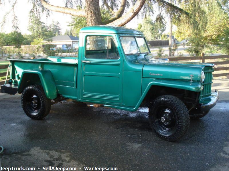 “1959 Willys/Jeep pickup, reconditioned to a very clean original body (minor flaws) with updated portions of the running gear. This one is very solid and immediately driveable but would require minor details to thoroughly complete. The engine has been improved to a 302 cubic inch Ford V8 with dual exhaust. It has an updated radio system and floor carpeting. It requires relatively easy things like a headliner, steering wheel cap, and a door handle & door panel, which is included. It is a very appealing color and offers the added horsepower and strength of a V8. It runs and drives well and is ready to enjoy. $7,900 email: rickponti@sbcglobal.net phone: (209) 772-9700″