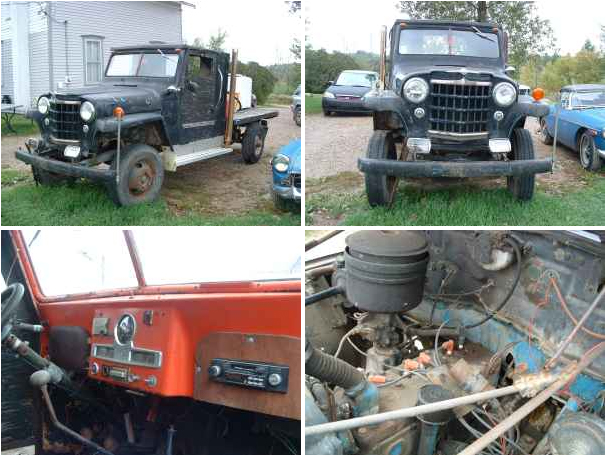 “This is a 1947 2wd willys truck that is a flatbed. The eng runs great and it drives good too. The truck has been customized to a rag top and behind the windshield to the back of the cab is all well made. This is something you must see to get a true picture. It has the 6cyl with the 3speed on the floor trans and all original axles,shafts and frame. I was told dodge made these for the military for a short time but don’t know a lot about it. The miles are low and there is no smoke or bad noises in the drive line. One windshield is cracked but the dash is in good condition and the steering is tight. There is functional exaust stacks on it as well. I have seats for it and a console but they are not in it as of yet. I just put a 54.00 electric fuel pump on it. It still needs the wood doors replaced but I have one for a pattern and the floors were just replaced and painted. The bed is in great shape. Feel free to ask any questions and I will answer them all.”