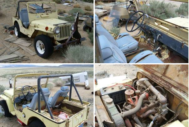 “GOT A 1952 WILLYS JEEP FOR SALE , 4 CYLINDER , WARN HUBS , WARN OVER DRIVE, GIVES 12 FOWARD GEARS , 4 REVERSE GEARS , ALL ORIGINAL . 6 VOLT , A GREAT LITTLE PROJECT , BEEN SITTING IN THE DESERT FOR ABOUT 7 YEARS , CAL PLATES 52CJ3A , CALL 5303058259 CHRISTOPHER”