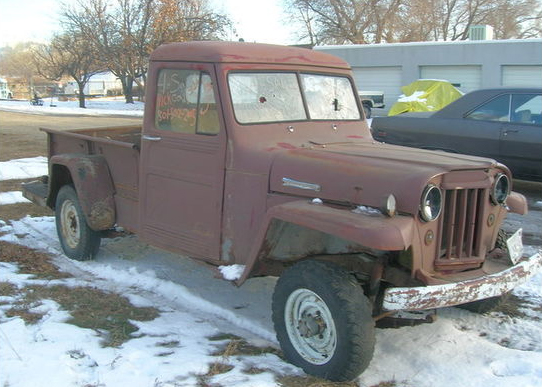 “1955 willys jeeep truck no rust just a fer small dents it did run a few years ago some stold carb and distribitor comes with another engine tranny and transfercase will trade for a 4 wheel drive 4 wheeler or any kind of snowmobile 700 or bigger call or text me what you have no email please”