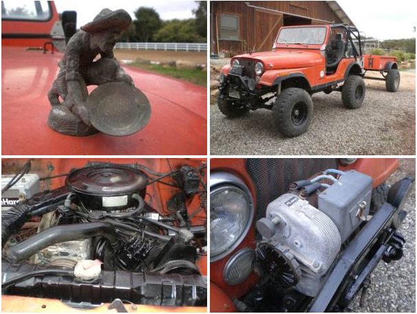 The drivetrain and suspension have been upgraded with Lincoln locker rear axle? So, by welding the axle shafts and differential gears together that’s an upgrade? Boy, I bet this Jeep handles like a pig on paved roads. Also, if you’re going to spray black paint in the engine compartment it’s best to avoid painting the radiator hoses and distributer cap. By the way, just how many fuel pumps are necessary to keep this Jeep running?