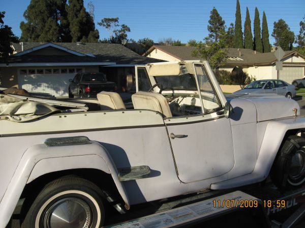 “1950 Willy’s Jeepster in good condition only 2 owners. Convertable roof and side windows, New gas tank needs to be installed, new battery, rebuilt carb, Henry “J” 6cylinder Flat head engine. Not running now, but was running a few years ago. needs tires (40+ years old) but not in too bad condition has been garage kept since the 60’s. NEEDS TLC.. HAS A LOT OF ORIGINAL PARTS STILL more pictures avalible if needed”