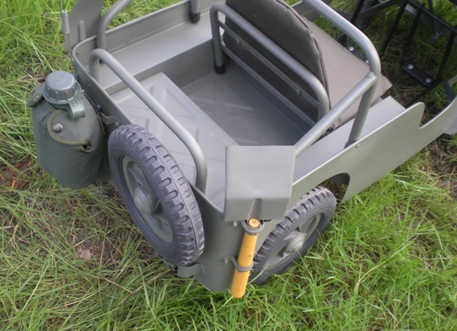 I’m guessing by the front grille that this is some type of Tri-ang pedal jeep, based on what I can see from the CJ-3B Page. The back is different though. Lots of pics and even a video.