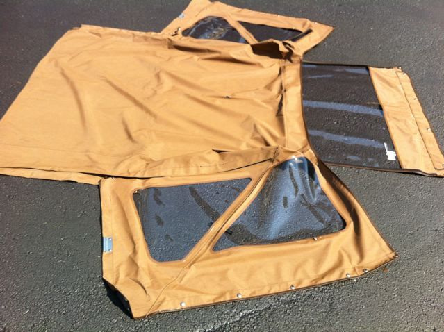“Paradise Jeep brings you another RARE find: This is a NOS (new old stock) soft top for a Jeep CJ-5 (1976-1983) made by Bestop (this model is called the “Royal Craftsman”, and was Bestop’s best offering at the time). It was branded as a luxury top, with many thoughtful quality touches not found on the basic entry level soft tops. The color is Levi Tan. It is MINT- except for the one small mouse hole in the roof of the soft top as seen. Easily fixed with a patch. If you need one, I will include a piece of matching genuine Levi material for you to use as a patch if you wish. This is in excellent/perfect condition with the exception of that one blemish. Shipping to be $30. Good luck and Happy Jeeping! Please see my other NOS Jeep items listed!”
