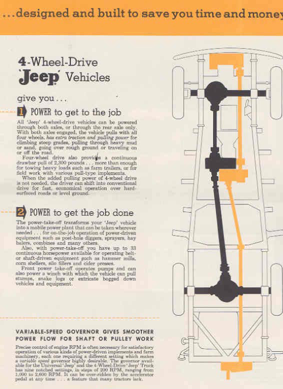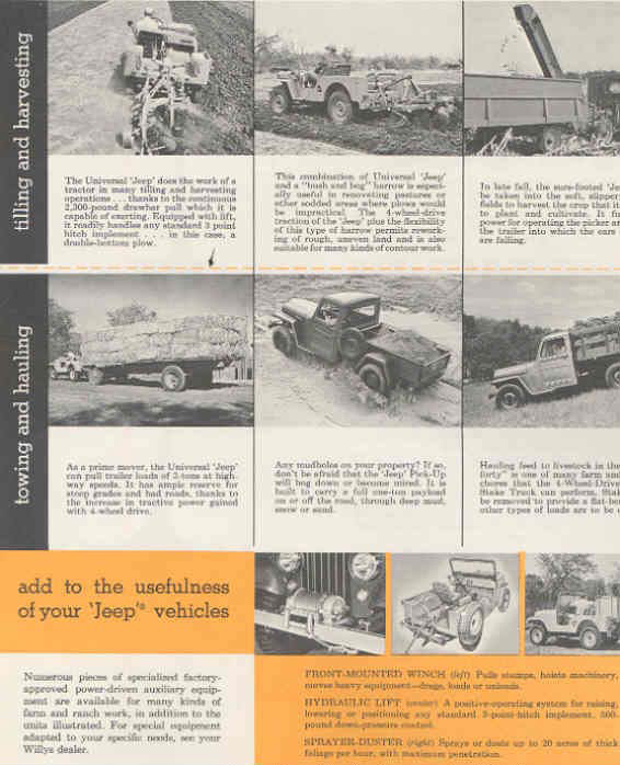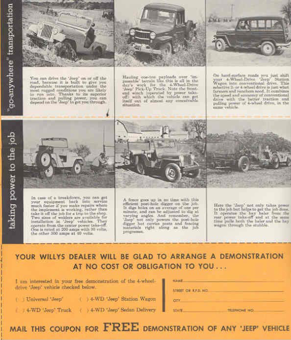 Here’s a mailer directed at farmers. Though the mailer shows CJ-2As and CJ-3As in the pictures, they don’t appear on the list of ‘Jeep’ family vehicles. And the CJ-3B isn’t shown anywhere.