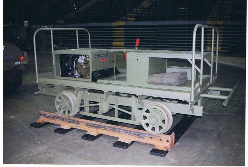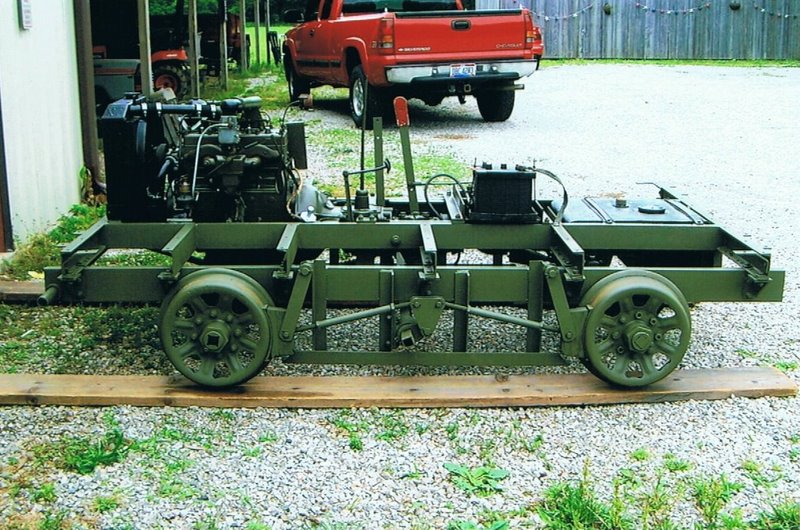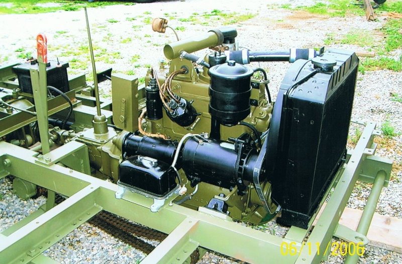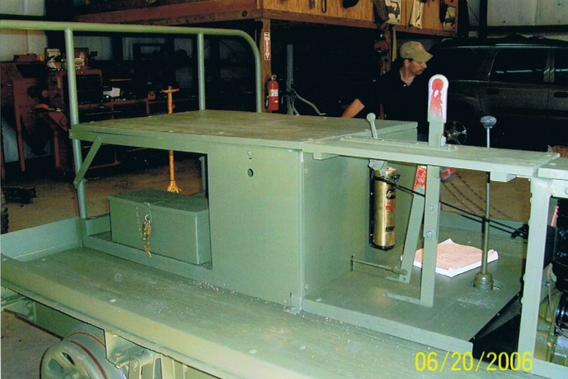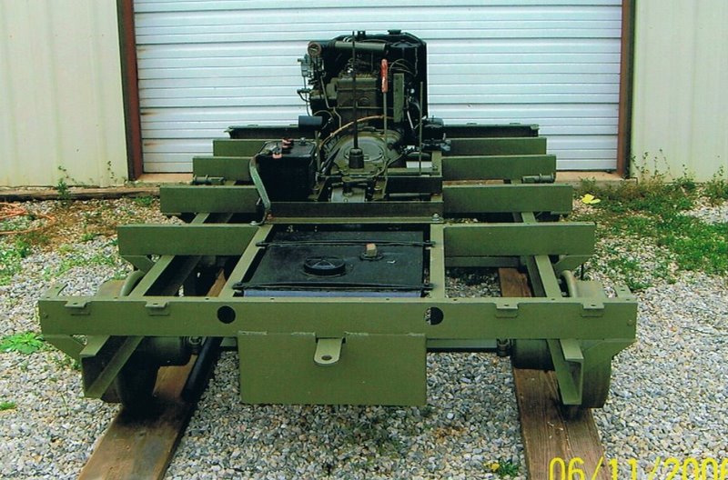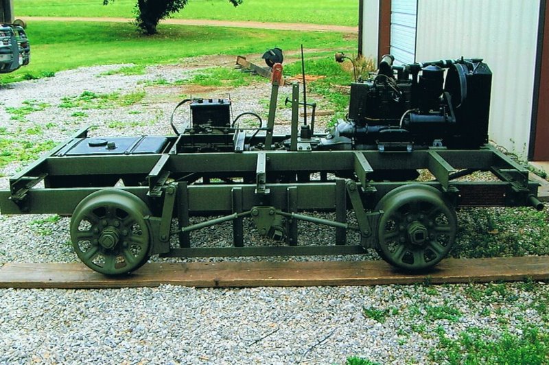 If this is not the most unusual and the most rare WWII vehicle I have had the opportunity to sell it is definitely in the top three. It was built for the U.S. Army Transportation Corp by the Kalamazoo Manufacturing Co. Kalamazoo Michigan. It is serial number 5913 USA number M1013 and was delivered January 1945. What makes it interesting to me is they used everything they could from the MB, purchased right from Willys. The engine complete with oil filter, air filter, regulator, battery, bell housing and T-84 transmission and all of the gauges are the same as the MB. They even used the MB fuel tank and radiator. It is 4 wheel drive and that is accomplished through chain drive and a forward-reverse lever which gave three gear speeds in each direction so the transfer case was not needed. When it was found and purchased 5 or 6 years ago, it was still in very good running condition and had never been allowed to set outside. Most of the vehicle is wood and due to inside storage for 60 years 95% of the original wood was saved in the total restoration. You can see in the as purchased photos (yellow trim) how good the wood was, only the side rail boards had to be replaced mainly from being kicked and broken. Before restoration it was used on several Sunday rail trips in the Jackson Ohio area. It will go much faster that you will want to drive it. As you can see from the photos it was professionally and totally disassembled rebuilt, researched for paint scheme and reassembled. With the wood being in such good condition it was easy to sand down to the original colors and markings. It was shown at the 2006 MVPA convention in Dayton Ohio.”