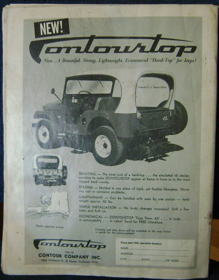 I ran across this unusual Controurtop Hardtop in an ad from the April 1967 issue of Four Wheeler Magazine. I’ve never seen one of these for sale on Craigslist.