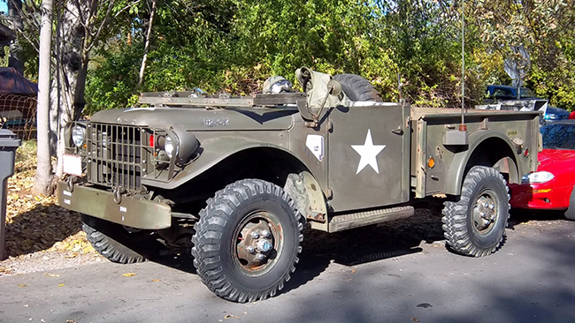 Steve writes, “Sunday I photographed Jack and his restored MB and M-100 trailer at the ceremony on Veteran’s Day,at the new Veteran’s Cemetery 10 miles West of town. Jack restored this Jeep exactly like the one he drove in the Korean War from 1950 to 1953. It’s complete with machine gun mounted on the passenger’s side. I asked, and he said that most of their Jeeps were beat up MB’s left over from WWII. They didn’t see many “new” M38A-1 Jeeps during his tour.