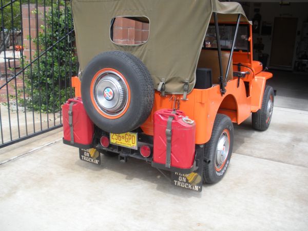 “1948 Willy’s Jeep, all original, 15000 miles on rebuild. Seats reupholstered, orange paint job. New Jensen