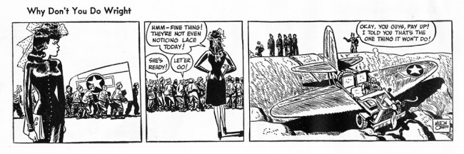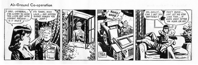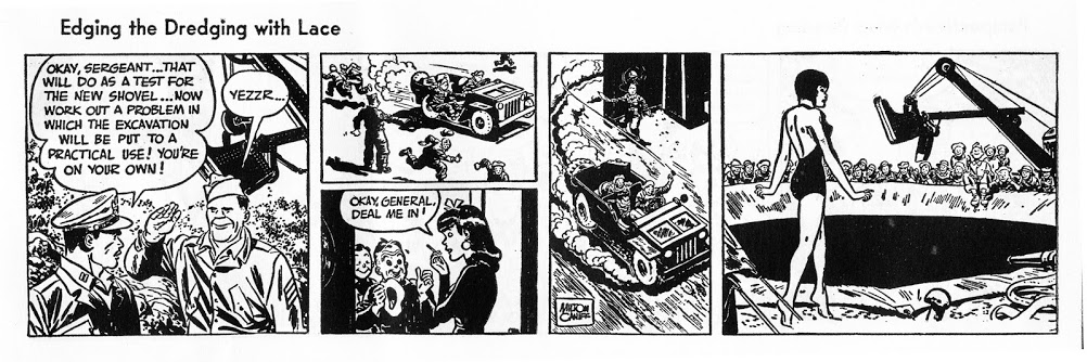 He writes, “My Dad had a copy of this printing of Milt Caniff’s Male Call and had it stashed in the back of a dresser drawer. Fair game for a 12-year-old when I ‘discovered’ it in ’64. Don’t know what happened to his copy. Saw a copy on Amazon and grabbed it. I scanned all the images that include all or part of a Jeep in the strip. Consider this a fresh look, enjoy!”
