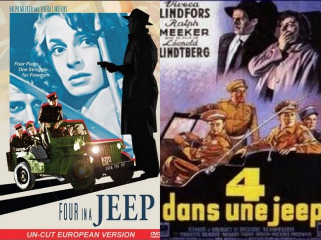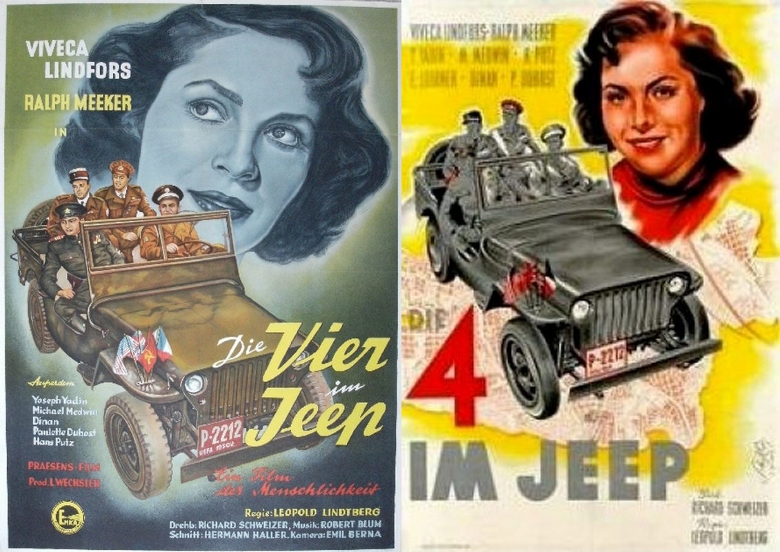 Die Vier im Jeep (Four in a Jeep) was the original title of this 1951. It was filmed in Austria. Anyone seen it? I found some neat posters about it. Here’s more on Wikipedia.