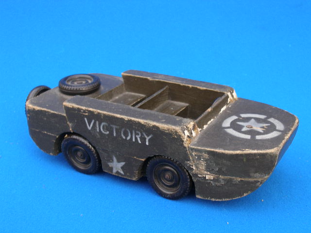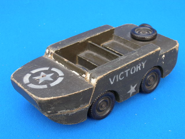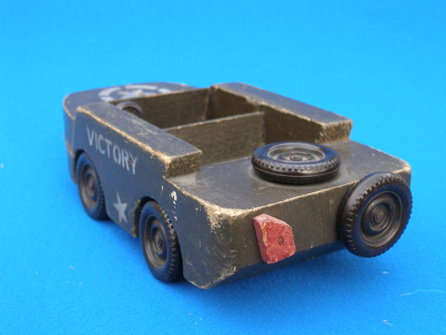 “ORIGINAL WW2 WOODEN VICTORY 1945 TOY GPA WILLYS JEEP , UNUSUAL ITEM , 8.2 INCHES LONG AS SHOWN IN GOOD CONDITION 100% WW2 MADE TOY ”