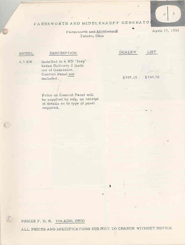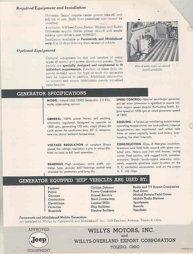 “Original non color sales sheet , 8.5 x 11 , three file holes at edge , printed both sides . Shows and describes the Jeep optional accessories . Also included is a typewritten sheet , 8.5 x 11 , which includes prices of the options.”
