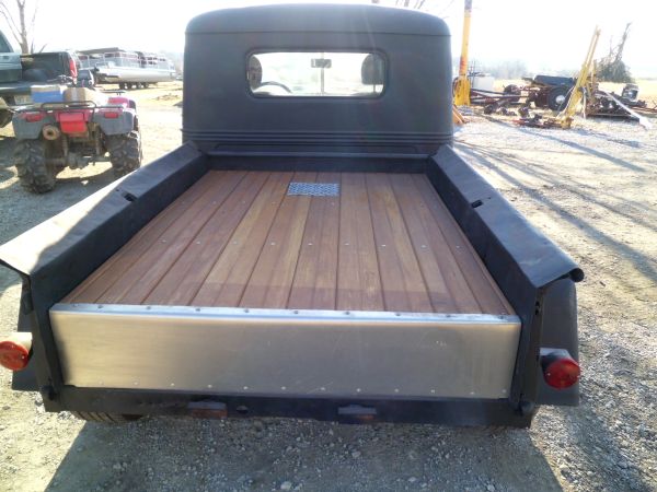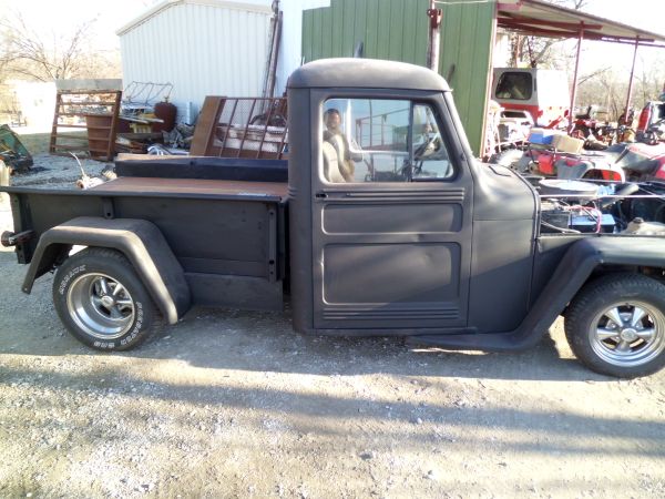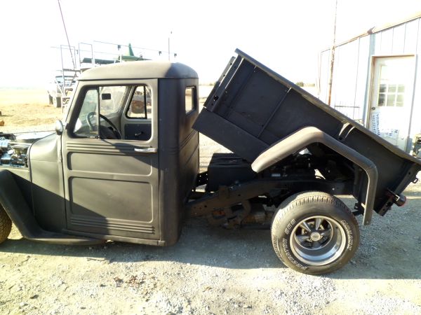 “50 model pickup. 350 chevy rebuilt and chromed out. 350 tranny. hydraulic tilt bed with wooden floor . Painted flat black. Wouldn’t take much boddy work. 5000.00”