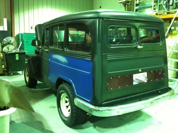 “1950 Willys Wagon 4×4. Has a 1976 IH Scout frame, drive lines, brakes, engine, trans. 304 V8, 4 speed trans and fuel tank