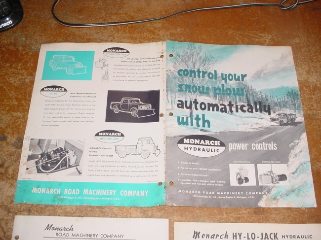 “Here is a vintage Monarch Hydraulic power Controls for you snowplow, circa late 1950s.