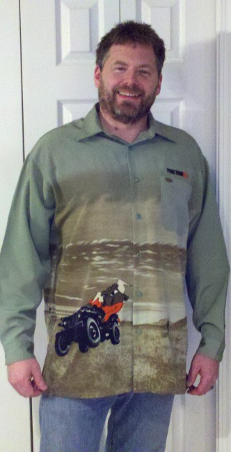 Seeing her reaction to this unique shirt was all I needed to bid on this. I thoroughly enjoyed appearing in the kitchen wearing it and seeing her reaction.