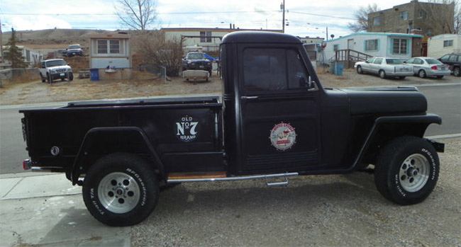 “Selling by auction. 1955 Willys pickup fitted onto a 1972 ford Bronco chassis and running gear. Clear title for 1955 Willys pickup. 302 ford engine with C-4 ford transmission, tramsfer case, and axles. Body is original 1955 Willys pickup. Straight with no rust. Runs great, drives great. Original mileage unknown.”