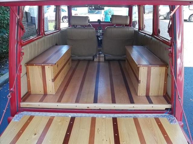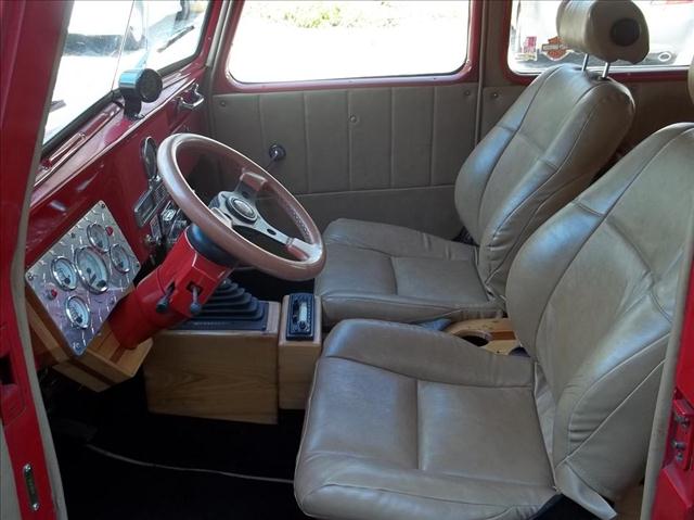 “1952 Willys Wagon for Sale. Custom Street Rod. 327 Cu In V8, 700R4 overdrive transmission, rack and pinion power steering, 4 wheel power disc brakes, ladder bar rear suspension with coil over shocks, 14″ pacer aluminum wheels with radial tires, real wood exterior accents, blue dot tail lights, custom bucket seat interior with real wood in rear deck area, custom console with cup holder and built in AM/FM/Cassette radio, tilt steering column, B&M shifter, Grant steering wheel, and VDO gauges. And, YES, the surfboard is included!”