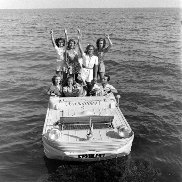 You can date these photos : they were taken after 1946 (invention of the bikini swimsuit, named after the atoll where the “Bravo” nuclear test took place), and before 1950, date when the French license plate numbering system changed. This GPA still bears the 1901 type licence plate, replaced in 1950.
