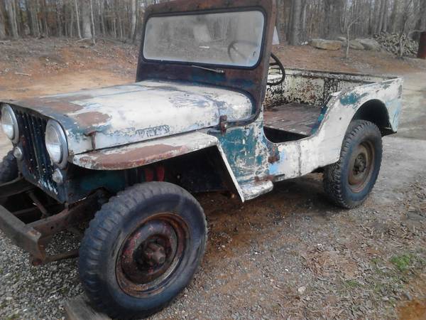 “I HAVE A LATE 40’S WILLIYS JEEP FOR SALE. NO DRIVER SEAT, MOTOR LOCKED UP. ALL ORIGIONAL. TWO WILLYS SPARE TIRES. NOT TITLE. ASKING $800.00 OBO. IF INTERESTED CALL WAYNE 336-752-2274. ALL E-MAILS WILL NOT BE ANSWERED SO CALL IF INTERESTED.”