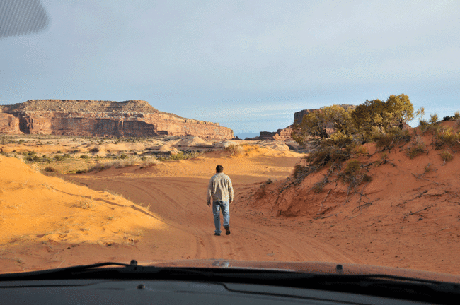 After the visit to the Dead Horse Point, he ventured off road, exploring some of the rougher terrain. We found a few cool spots to stop and take some photos. In the first pic below, you can just see me off to the left, high above the canyon below.