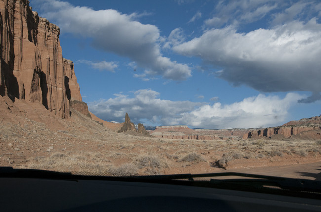To leave Cathedral Valley we had two options. We could go back the way we came (drive south then take the highways north) or head north towards I-70 and hope we could make it. The day before I asked the National Park Ranger if the roads led all the way to I-70. He said we could make it if we knew what we were doing and had a map of the area.