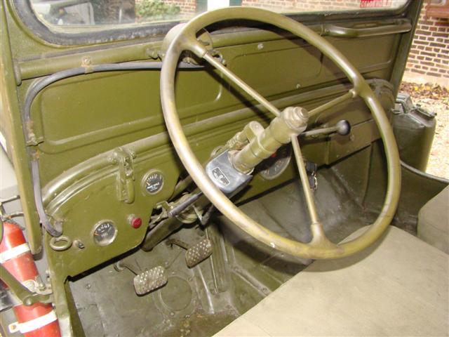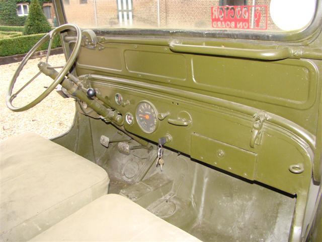 This one really puzzles me, the three on the tree and other details are consistent with the DJ3A, but the lengthened body and chassis are not, and a military ambulance with no 4wd ??, the 60/40 seat is more CJ5 or wagon like. it certainly is NOT US Army, but thats just paint, so what is it ?
