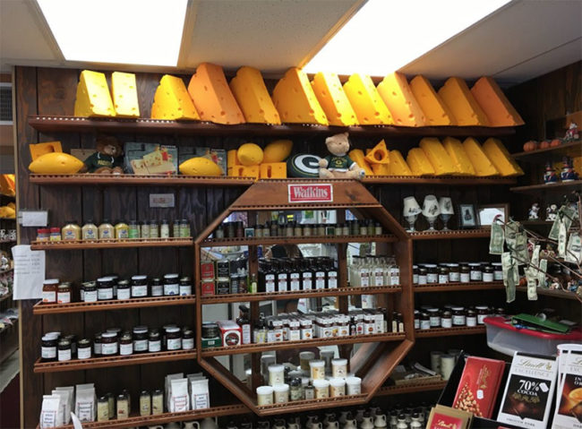 As darkness approached, we headed East through central Wisconsin. We discovered that there was a cheese factory along our route towards Michigan, so we stopped for some cheesy goodness at Hawkeye’s Dairy in Abbortsford, Wisconsin, a must-stop place according to Trip Advisor (and the following pics are from the same link … it was too dark and rainy to take good photos).