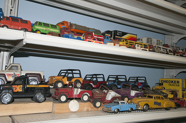 Jim told me he thought he had collected all the jeeps that were made, but I could see there were some he didn’t have (some rare Tonkas I’ve posted one eWillys for example). He also didn’t have the u-haul peddle jeep and trailer, though he had other similar U-haul toys.