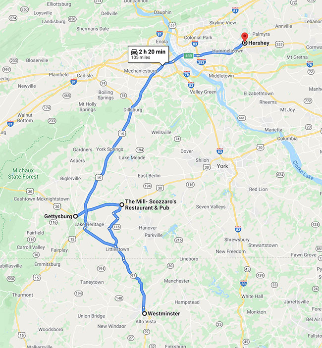 - We will spend Wednesday in Hershey, PA. We have plans for Thursday in Lancaster and Friday morning in Kempton, PA. From there we will be driving to Long Island on Friday and meeting up with my son (unless they ship him out to Oklahoma). We’ll be staying in the Sea Cliff area through Tuesday morning and then driving up to Connecticut. I hope to have a map update in the next couple of days.