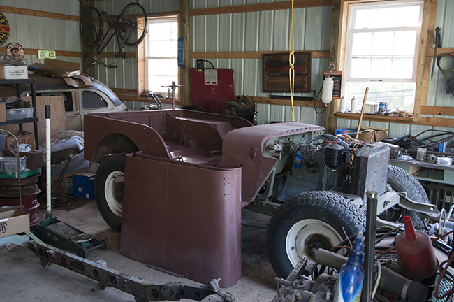 Merlin and I discussed some of the challenges of jeep restorations. One lesson he’s learned the hard way was not to give any flat bids, because he told me you never know what problems lurk behind the differential covers, under the transmission towers, or beneath the dash. People seem happy with his work, because he’s got as much business as he can handle (good for you Merlin!).