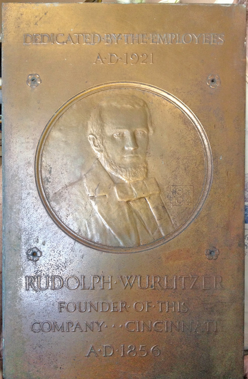 A plaque dedicated to Rudolph Wurlitzer that hung in the 42nd Street Wurlitzer store in Manhattan. When the store was being demolished, employee Nick Arbusio saved it and stored it for several decades. Through the help of an eWillys reader, it was obtained from Nick, then mailed to me. Now, it’s finally completed a cross country journey and has a new home in North Tonawanda.