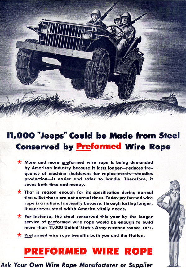 “11,000 Jeeps could be made from steel conserved by Performed Wire Rope…