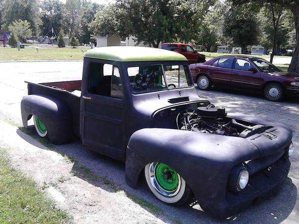 “i have a 62 willys rat with a 50’s f100 front end and bed 305 chevy motor 700r4 trans air ride new vair compressors and bags”
