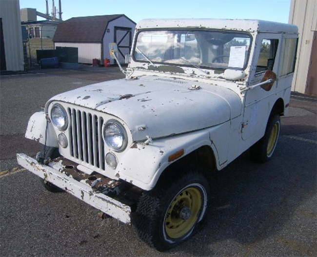 “1972 jeep CJ-5 4×4, 4 cly gas motor 4 speed transmission, does not run, no battery or radiator, odometer reading 63949,has flat tire. Vin# J2F835TE2219, Buyer loads, preview and load out by appointment.”