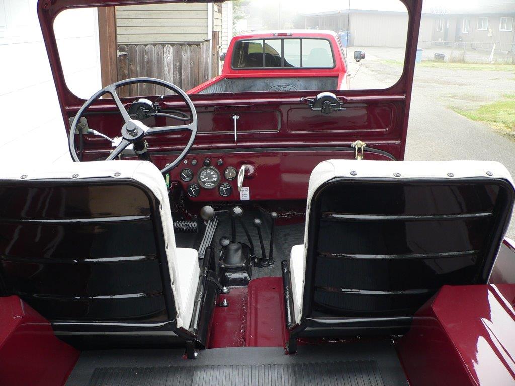 Paul writes, “What you see is a conglomeration of what you brought up here several years ago and a couple of “farm/orchard” jeep’s from Wenatchee plus new parts from major suppliers. it looks good, runs good and is “cute”. I have a roll bar I am going to re-configure (single hoop with stiffeners) that I will install for safety reasons and ad 3 point safety belts, no rear seat so no rear belts. It has 15 inch wheels and radial street tires on it now but a friend of mine found five really nice 16 inch wheels at the Monroe swap meet a couple of weeks ago so sometime soon we will add those with new era correct tires to the “look”