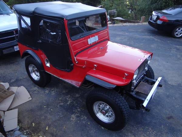 “nice jeep 283 chevy and 4 speed with over drive new besttop, 19 gallon fuel cell disk brakes”