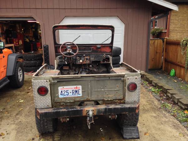 Mike, who’s admitted he’s addicted to searching for jeeps everywhere (welcome to the club!), spotted this one for sale. He reports there is rust and no data plates. The odd part about this M-38 is the lack of a driver’s side filler hole.