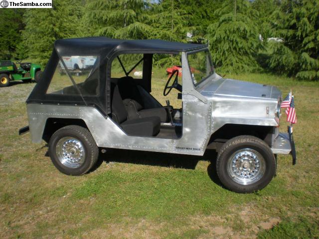 “Jeep style VW powered aluminum dune buggy / parade car, looks like a Jeep, a real attention getter and conversation piece, a great advertisement vehicle, single port motor, runs good, $5500.00 ”