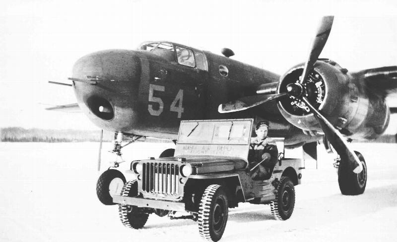 Here’s a neat photo from the NPS archives which appears to show a GPW (based on the bumper) parked in front of a B-25H. This was possibly taken in the Aleutians somewhere.
