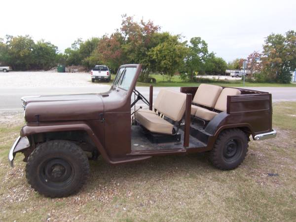 “1952 WILLYS JEEP ON 1963 CHASSIS. Over $7100.00 in receipts, at least $1,000.00 more work done without reciepts. Included are two parts jeeps. One of the parts jeeps has a clear California title on a rolling frame. The other parts jeep is just for body parts. The engine in the jeep now is from the parts jeep. It runs and you can drive it but it is not street legal. Not inspected. It needs turn signals and brake lights. The engine from the original jeep has been completely rebuilt bored .030 over. I’m just waiting on the new water pump to arrive to complete this rebuilt engine. The new engine has been test run. New upolstery, paint, rebuilt transmission, etc. The tires are like new, including the spare. It is registered until 2014. I have a clear blue title in my name. There is enough spares to build a complete second jeep. The engine is a Jeep 230 tornado. 4 wheel drive. The body has been modified to make a good hunting jeep. One of the parts jeeps in the pictures has all the wood parts removed and is now a rolling chassis with transmission. Located in San Leon TX close to Kemah and Bacliff on Galveston Bay. Open to trades. Would like a pickup or older Suburban . But let me know what you have. If you see this ad they are still for sale. $3,500.00 for all 3 jeeps.