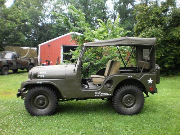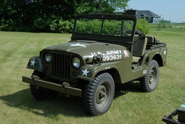 “I have a restored 1954 Willys M38A1 Military Jeep for sale. Delivered to the Army in February 1954. Runs excellent. Newly rebuilt fuel pump. Engine runs at a steady 50 pounds of pressure and purrs like a kitten. The body is 99% rust free and original. Has all 3 seats,top bows,still all 24 Volt electrical, correct gas tank, new canvas winter top,top bows,jerrycan,pintle hook, shovel,axe, new canvas seat cushions, parking brake works, transmission shifts great(very smooth),new clutch, transfer case works great as does the 4 wheel drive. Has 5 brand new(100 miles on them) Military NDCC tires, correct rims, has had all new brakes put on. New exhaust system. Windshield wipers and all lights work. Has 2 new 12 volt batteries. Just changed the oil and filter last night. INCLUDES a NON-FIRING(cannot be made to fire),display .30 Cal. M1919A4 machine gun, M31A1 mount.pintle,travel arm. Looks AWESOME when installed! This jeep runs great and goes down the road excellent. Very nice ride with top up or down! Here is a link to some of the work done on it”