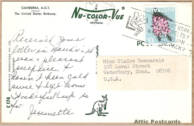 Postcard Title: Canberra, A.C.T. The United States Embassy.